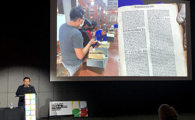 Su ponencia “Aprendiendo de las calles: lecciones de la letra gótica posmoderna mexicana” fue la única aceptada de instituciones de educación superior de México en este encuentro realizado del 9 al 14 de mayo, periodo en el cual acudió a reuniones con directivos de la ATypl, miembros y delegados de Estados Unidos, Argentina, Brasil, Colombia, España, Portugal, Francia, Reino Unido, Países Bajos, Bélgica, Alemania, Italia, Suiza, Polonia, Ucrania, India, China, Japón, Corea del Sur, Indonesia, Sri Lanka y Australia.