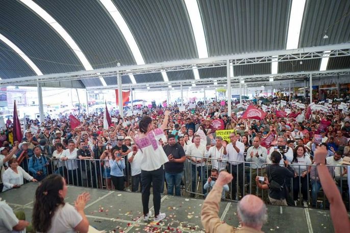 Zacatelco, Tlaxcala.- Este miércoles, Claudia Sheinbaum Pardo fue recibida por militantes y simpatizantes de Tlaxcala en una asamblea informativa donde destacó que la consolidación de la Cuarta Transformación será posible gracias a que el pueblo de México lleva en el corazón y en sus sentimientos los grandes cambios que se han vivido con este proyecto de nación que tiene como principal prioridad el bienestar de la ciudadanía.