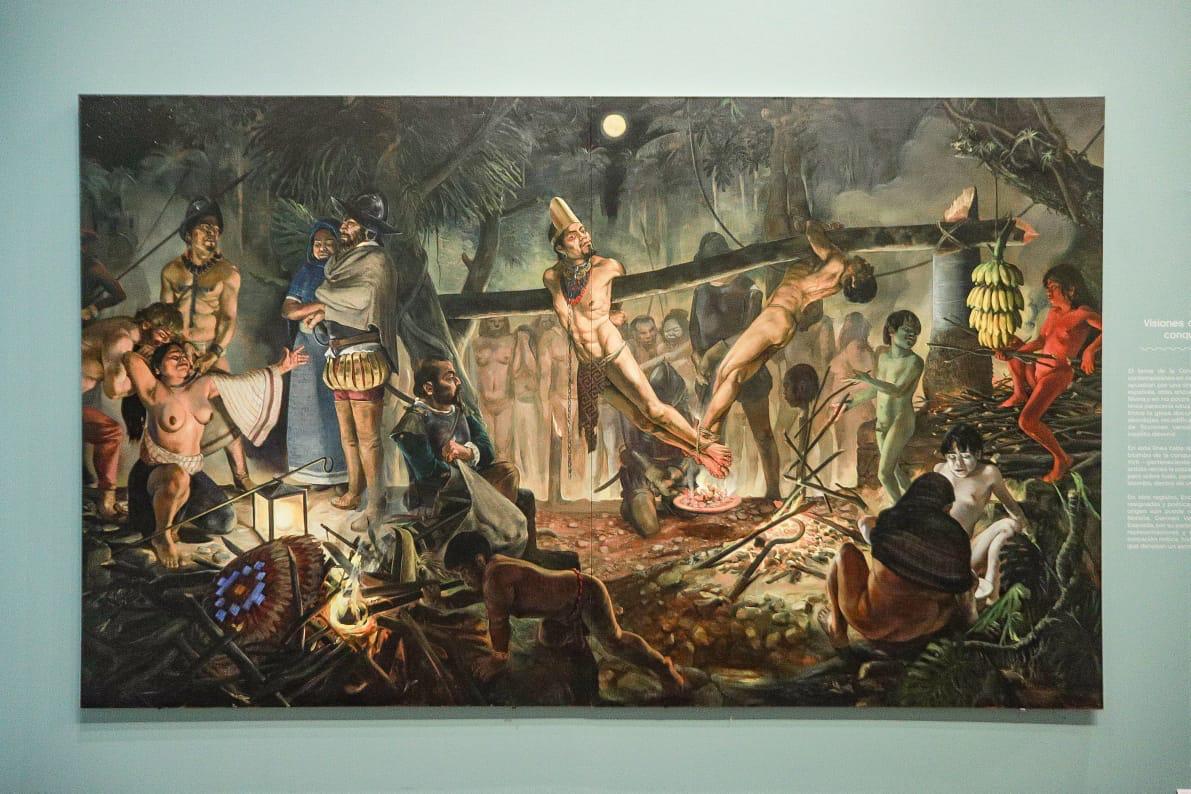 En un recorrido, el curador de la muestra, Luis Rius Caso, comentó como desde el medio artístico se ha analizado el pasado de México, con la Revolución Mexicana, la Independencia, y muchos creadores van todavía más atrás, cuestionándose la llegada de los españoles a México y lo que derivó de ella.