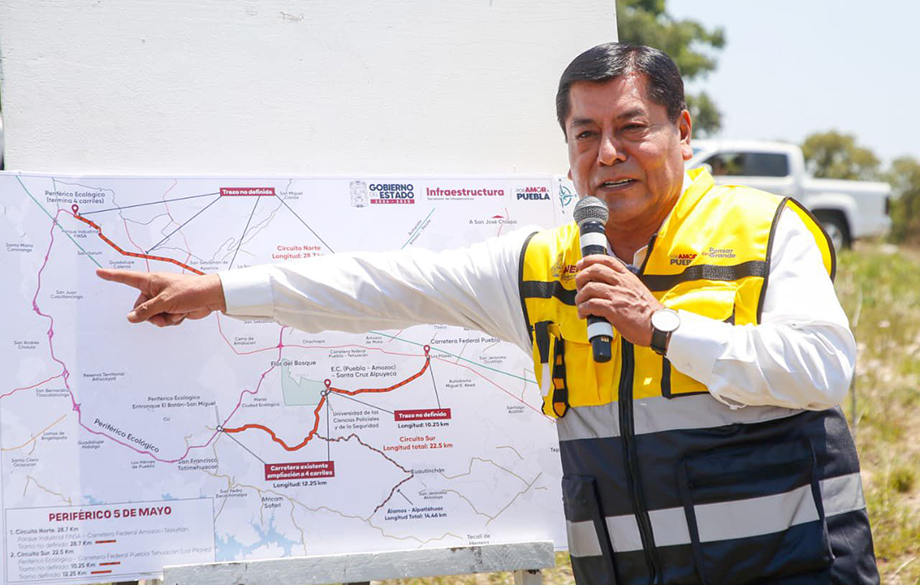 Al realizar un sobrevuelo acompañado por el secretario de Infraestructura, José Manuel Contreras de los Santos, el gobernador Alejandro Armenta Mier reiteró que el proyecto del Periférico 5 de Mayo contempla dos brazos: el Circuito Sur, que iniciará este año, y el Circuito Norte, programado para 2027. Como complemento, se construirá un bulevar de Tecali a Tepeaca para consolidar el circuito completo.