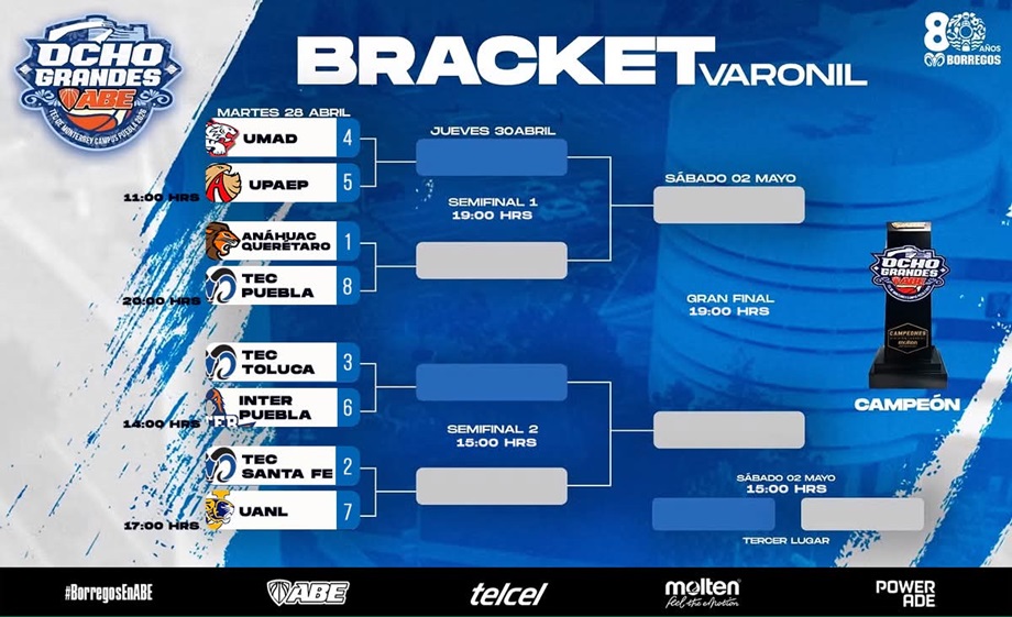 La duela del Tecnológico de Monterrey campus Puebla se encendió con la ceremonia de inauguración del Ocho Grandes ABE-ID, el evento más importante del básquetbol estudiantil en México. El estado recibe a los ocho mejores equipos de la División I, en ramas femenil y varonil, listos para disputar el campeonato nacional del 27 de abril al 2 de mayo.